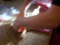 Then, roll with a rolling pin. I find this is an easy way to get the air out.