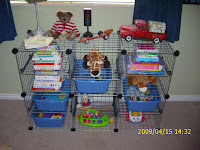 - I had this metal shelving unit that worked out perfectly because there was a floor vent on this wall. I would have covered the only source of heat if I had covered it with a solid piece of furniture. I bought some dish tubs at the dollar store to use as catch-all toy bins.