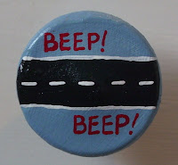 - I picked these wood shapes up at Robert’s Crafts and painted them to match the crib bedding. I am very proud of the police car. It is an exact replica of the bedding. 🙂 They were a dollar or two each.