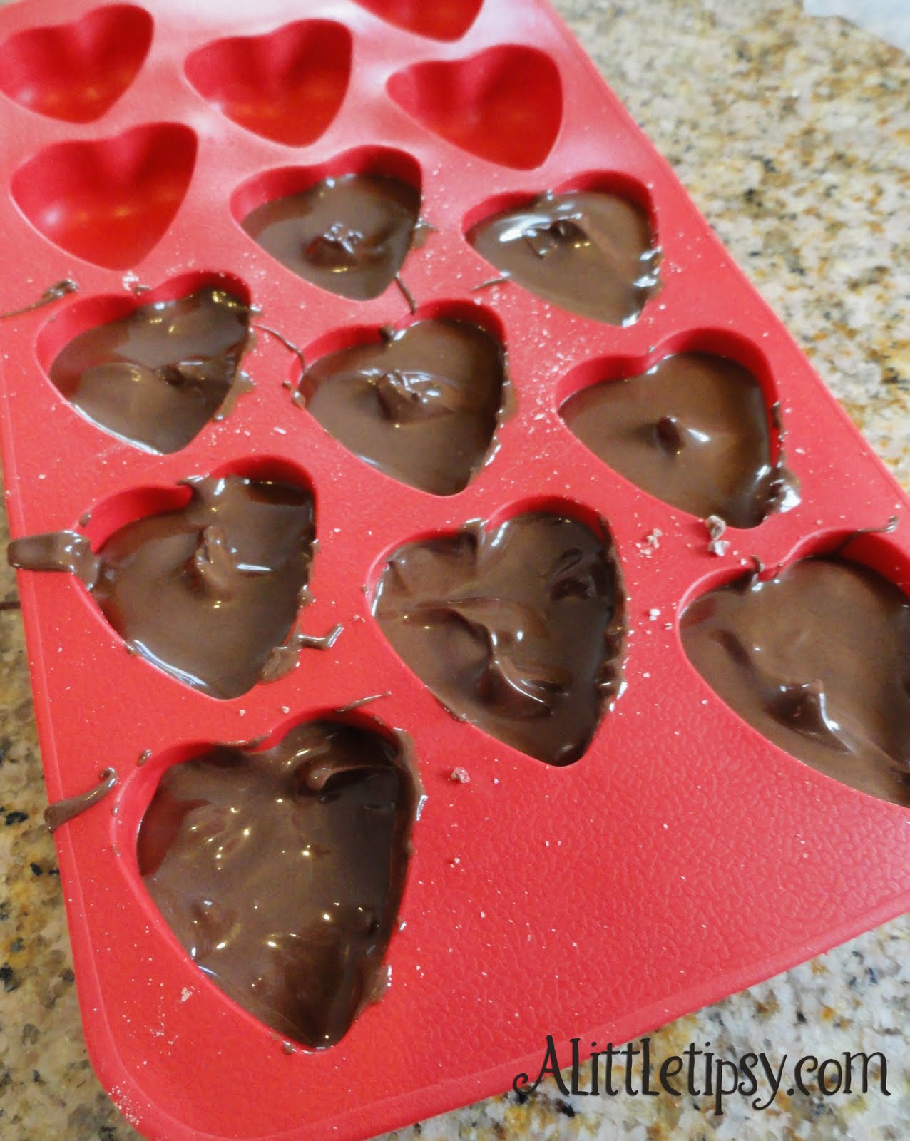 3. Scoop chocolate in to hearts and spread to the edges with a spoon.