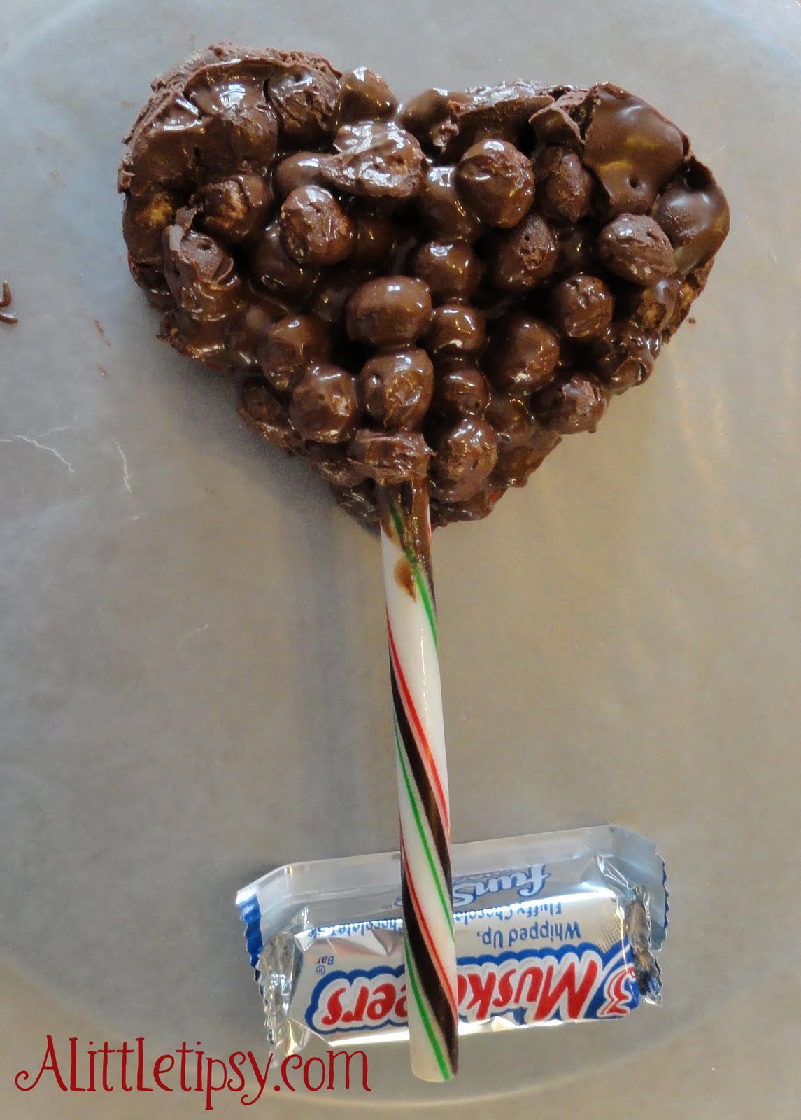 7. Turn on broiler and hold the heart under it melting the chocolate on the side that was on the wax paper.