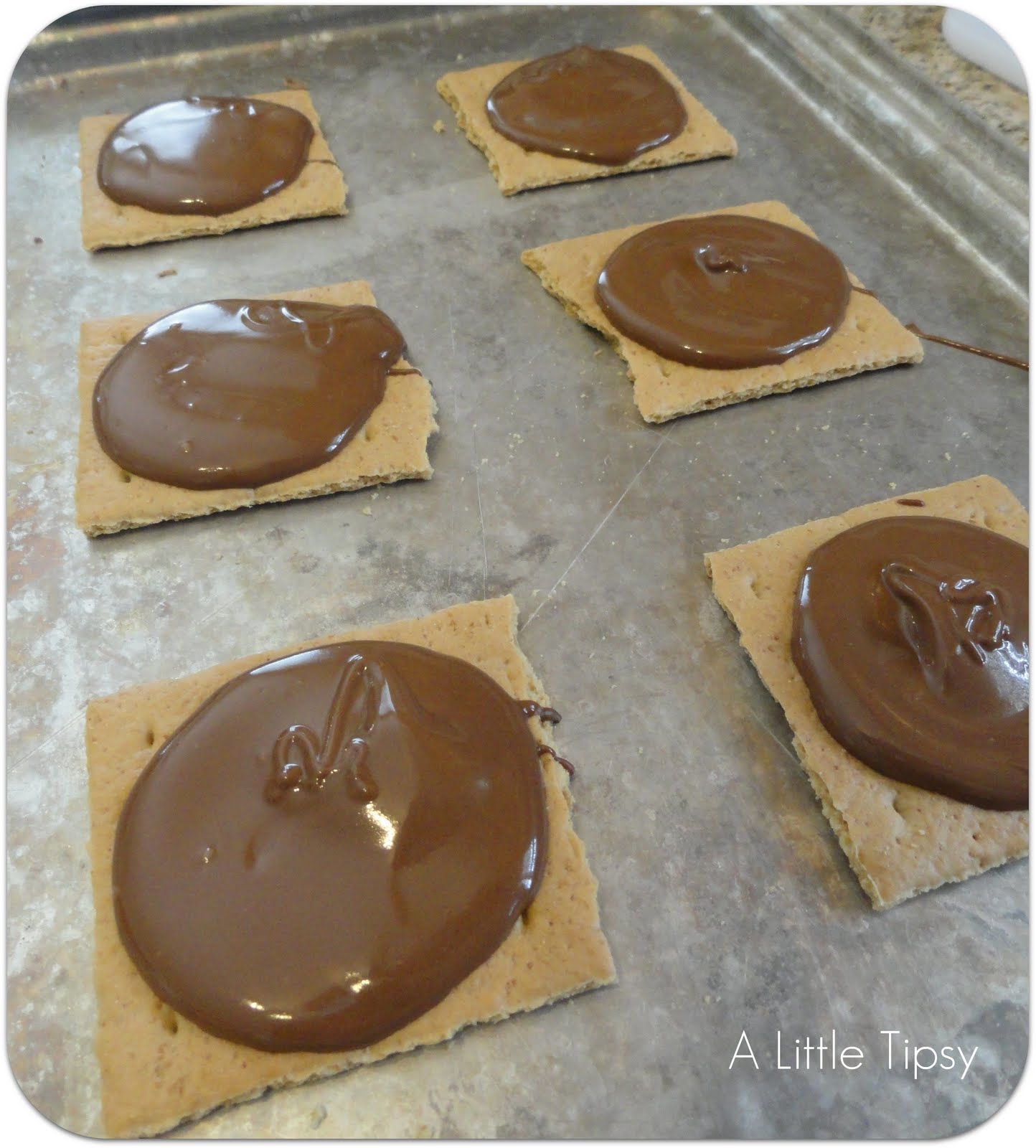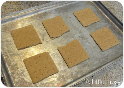 1. Lay out 8 graham squares on a cookie sheet. (I know I only have 6, but I had leftover chocolate so you can do 8.)