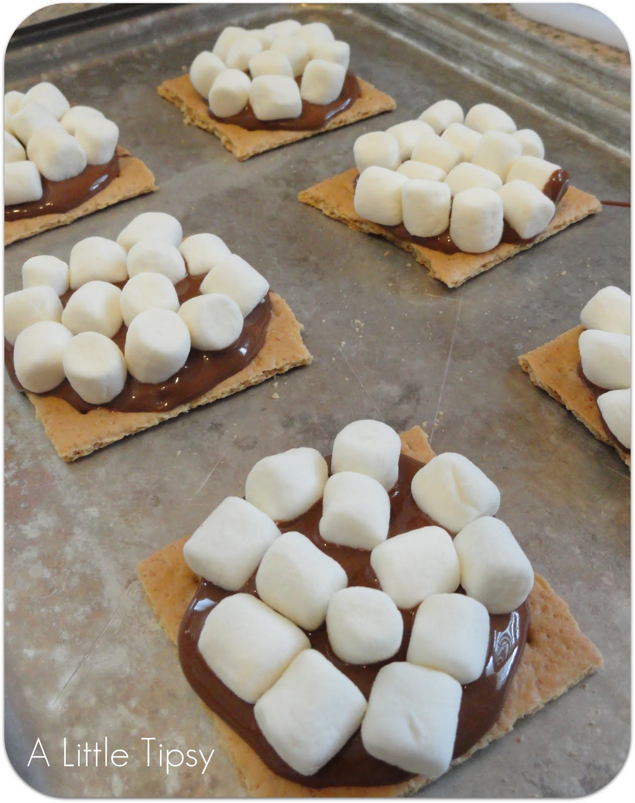 I have been pining for warm weather (it is finally starting to be nice after weeks and weeks of rain) and the chance to get outside so I decided to bring the outdoors in with a summertime favorite of ours, S’mores!