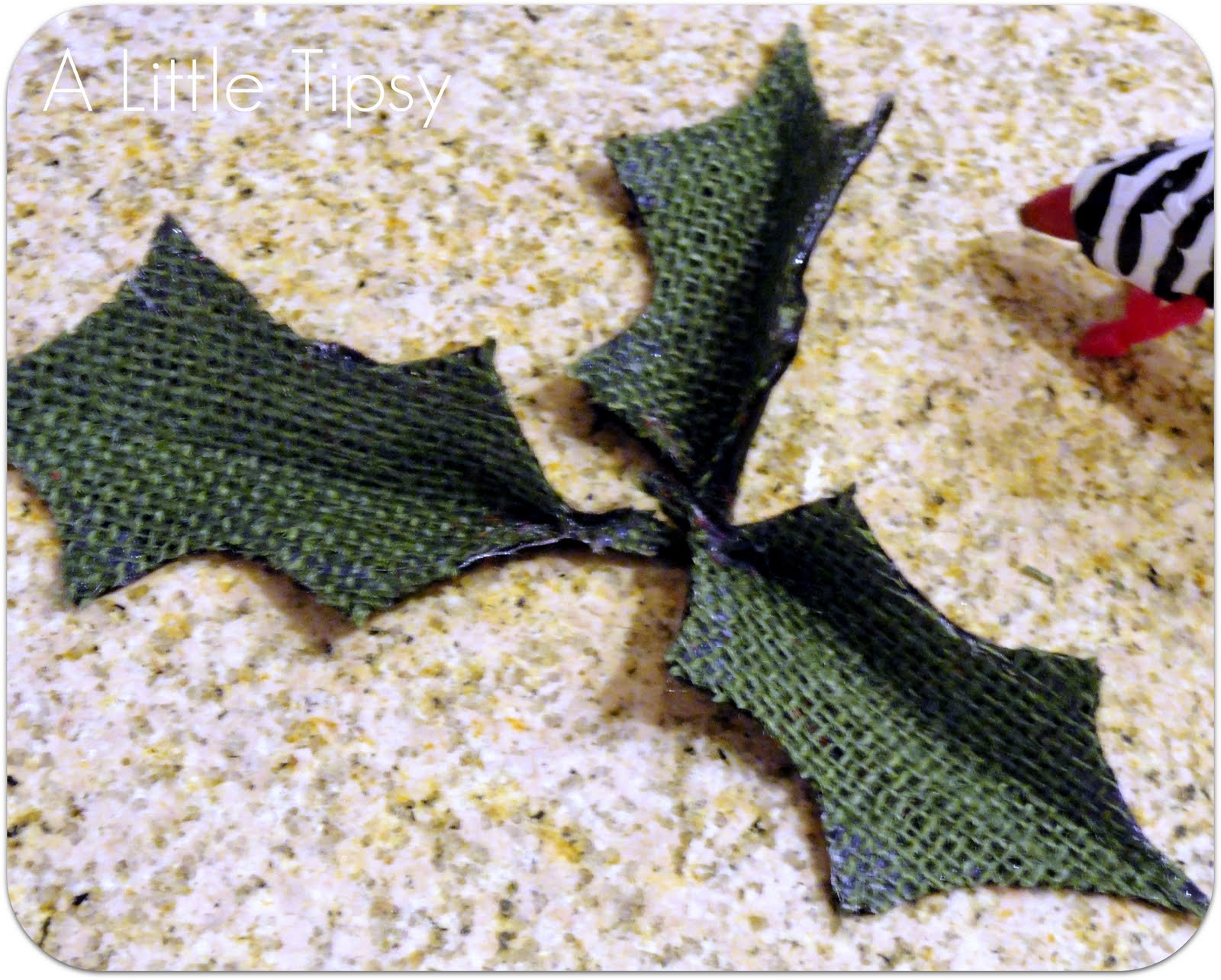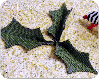 3. Hot glue round the edges of the holly leaf and back with some felt to strengthen and keep from fraying. I chose black because my green felt was too bright.