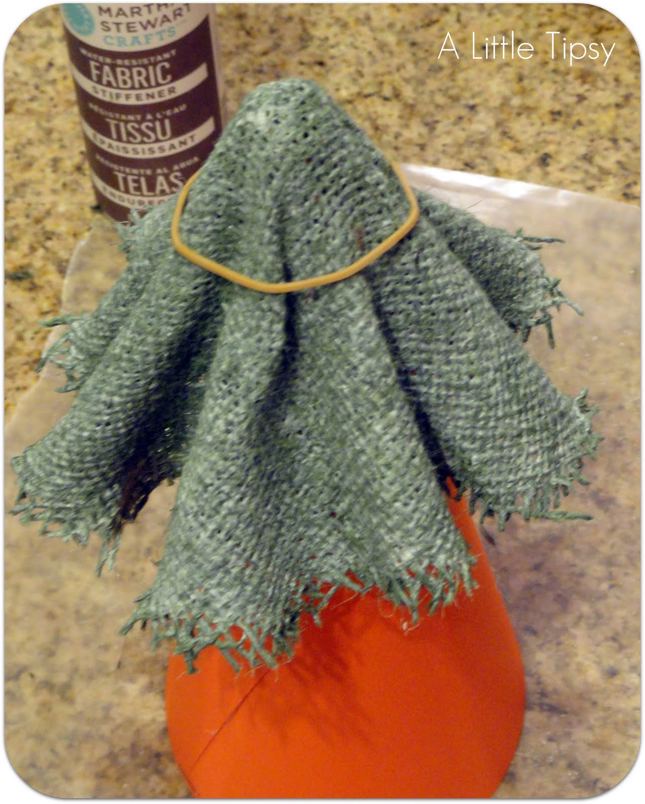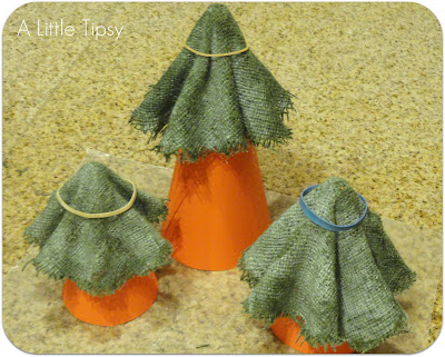 Start out with some green burlap and Martha Stewart Water-resistant fabric stiffener.