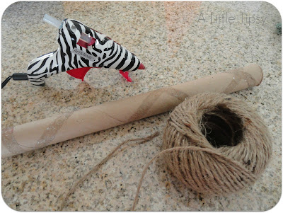 Cut a sturdy cardboard tube (smaller and thicker than a paper towel roll, I think mine may have been the middle of a tiny wrapping paper roll?) to size. About half of what is shown here.