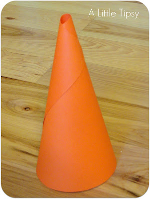 Make three cones out of cardstock by rolling it and hot gluing in place.