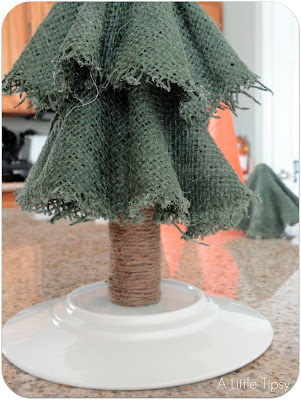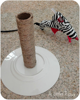 Cover in garden twine securing with hot glue along the way. Hot glue it to an upside down dessert plate.