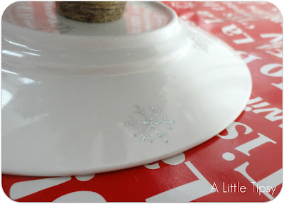 Use the smallest snowflake and stencil all around the plate with Martha Stewart silver metallic paint.