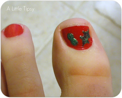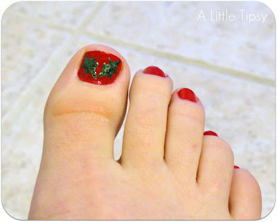 Cover with a clear coat and BAM. Super jolly Mistle-toe pedi!
