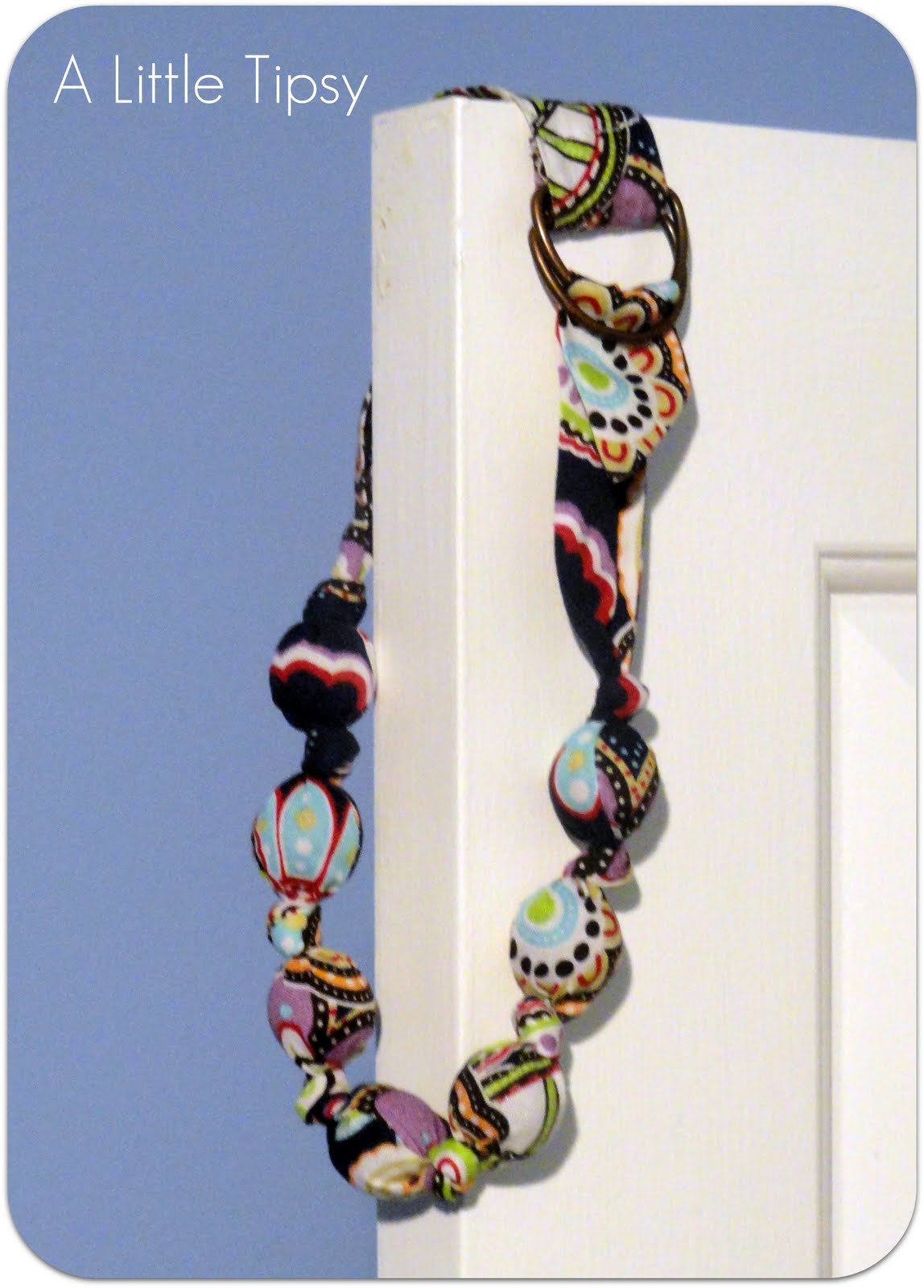 Just sew a fabric tube about 1.5 inches wide. Sew one end shut and fold the other end over a pair of D rings and sew. If you put the beads in before you sew one of the ends you won’t have to cut a slit.