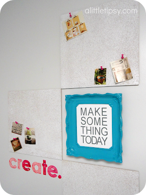 and with a few coats of Valspar gloss spray paint in Exotic Sea, a little vinyl, cork, and creativity ended up with these fun additions to my craft space.