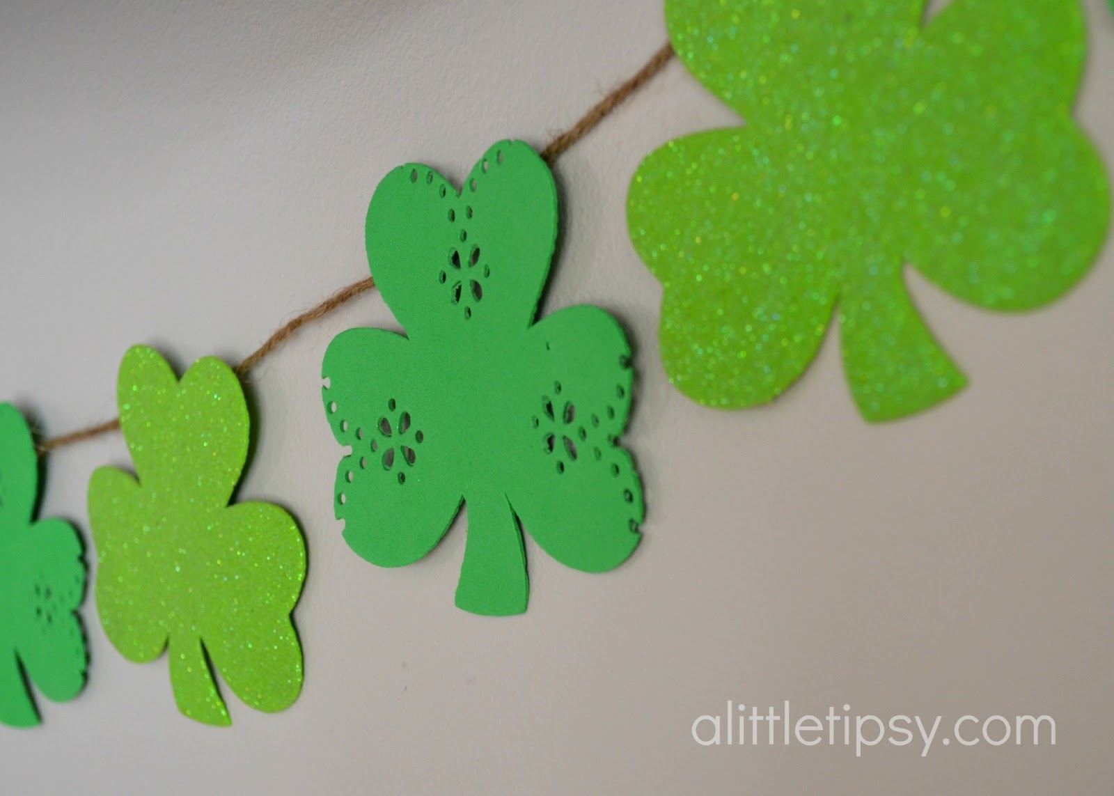 Valentine’s is past and I’m feeling the green! I love St. Patrick’s Day not only because it is super fun decor, but because my ancestor had a part in it. No really, he was the guy who kidnapped St. Patrick. Pretty funny right? Anyhow I wanted a project I could do with my 5 year old and this shamrock banner was just the ticket. It has got to be the easiest St. Patrick Craft ever! You need only four supplies.