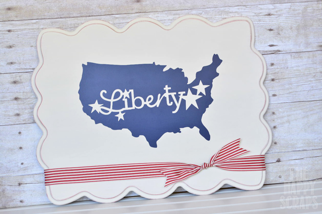 Hi, it’s Amy, here again from The Happy Scraps. I’m excited to be here sharing this fun Independence Day Liberty board. This was a really simple project, but it makes a statement and I’m so excited to have it up in my home for the 4th of July!