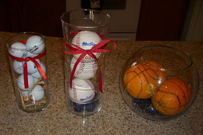 We also had a cute soccer ball book for all the guests to sign with their “pep talk.” I got it at Hobby Lobby. I thought it would be great to turn in to a brag book later. If you do this, you may want to pull the pages out of the plastic. Some of our guests accidentally signed on the plastic not the paper. And why not put the pens in a bowl inside a baseball mitt?