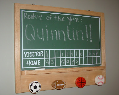 Here it is, the last post in the Sports Baby Shower series. Today we are talking games or to be more accurate, game. Since I did an open house style shower and I find most people aren’t much in to games anyway I just had a couple of things to keep the guests involved.