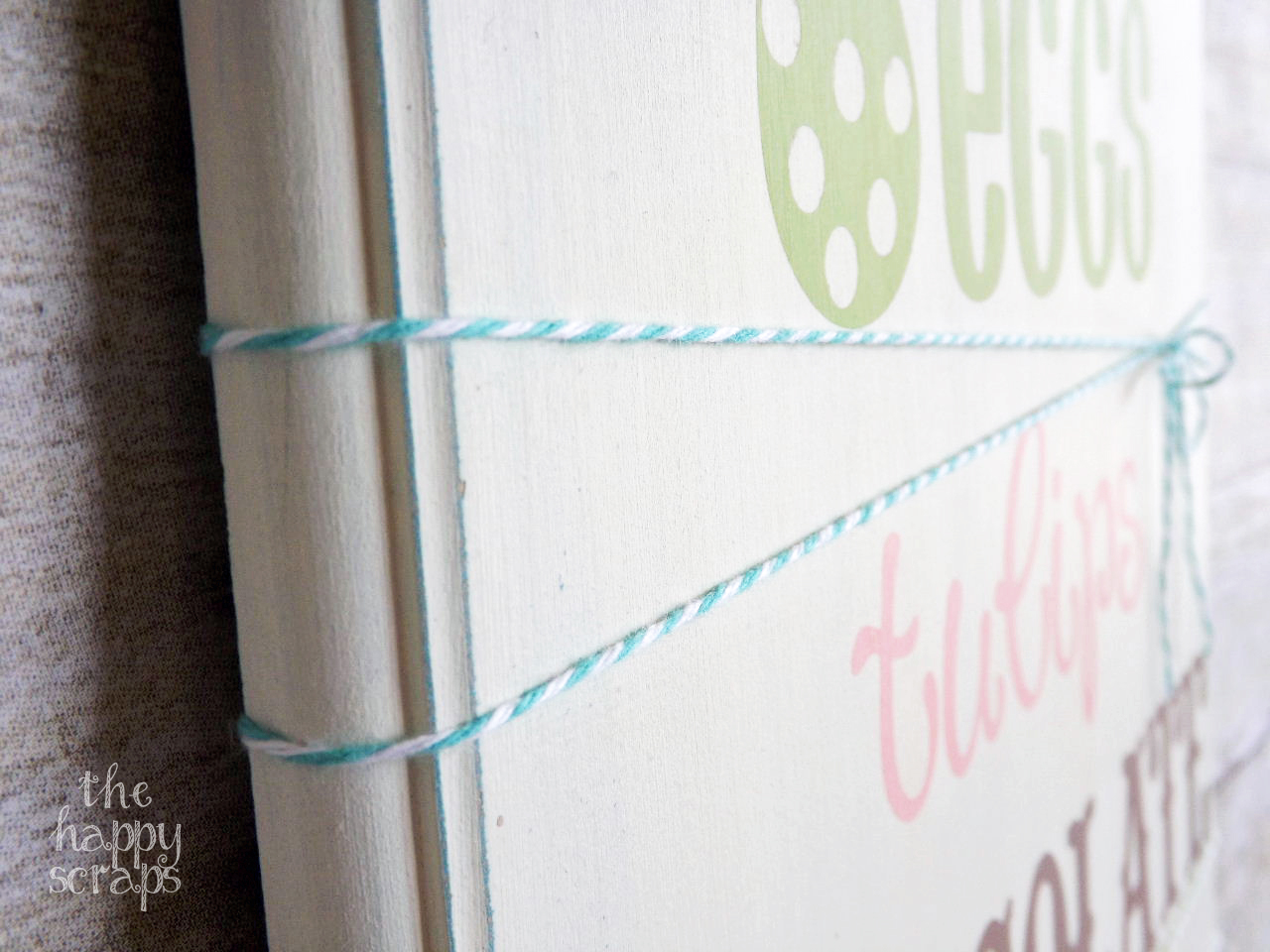 Once I was finished with the distressing, I wrapped some twine around the board in a few different places.
