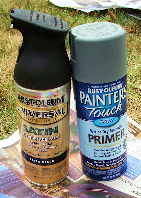 3. Once the primer was dry (follow the directions on the can) I added a coat of Satin Black. I laid the rings on some newspaper, but found that it stuck and left little pieces, so I moved to the garden ornament/paint can drying method.