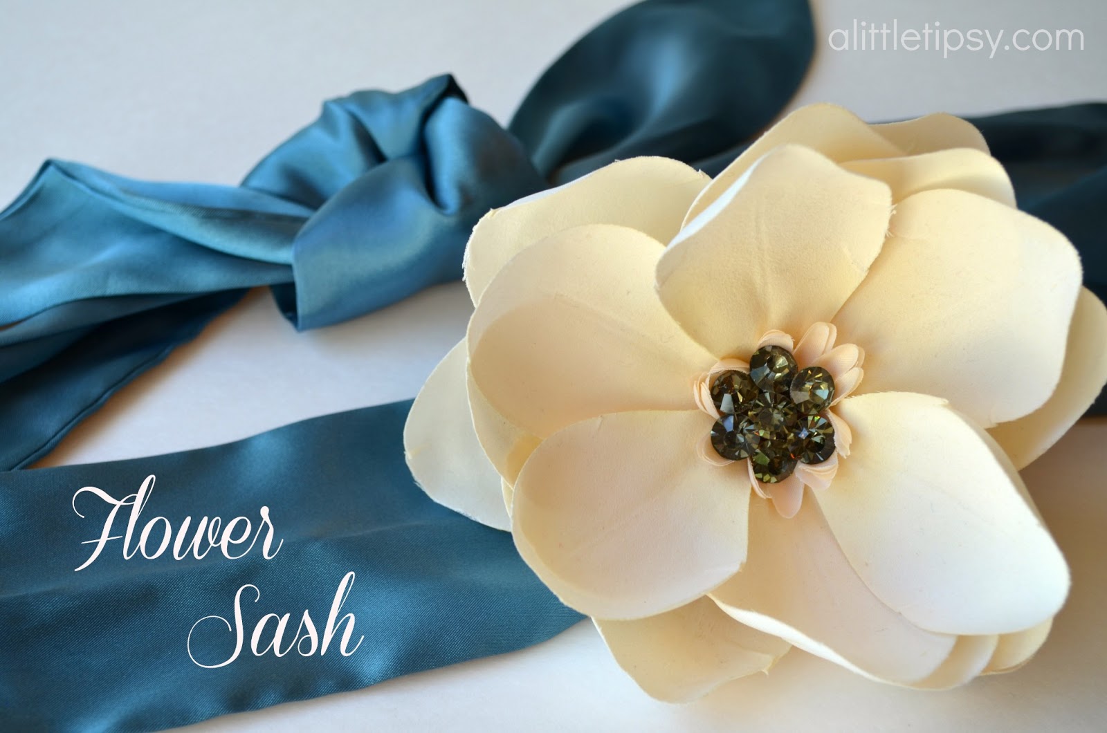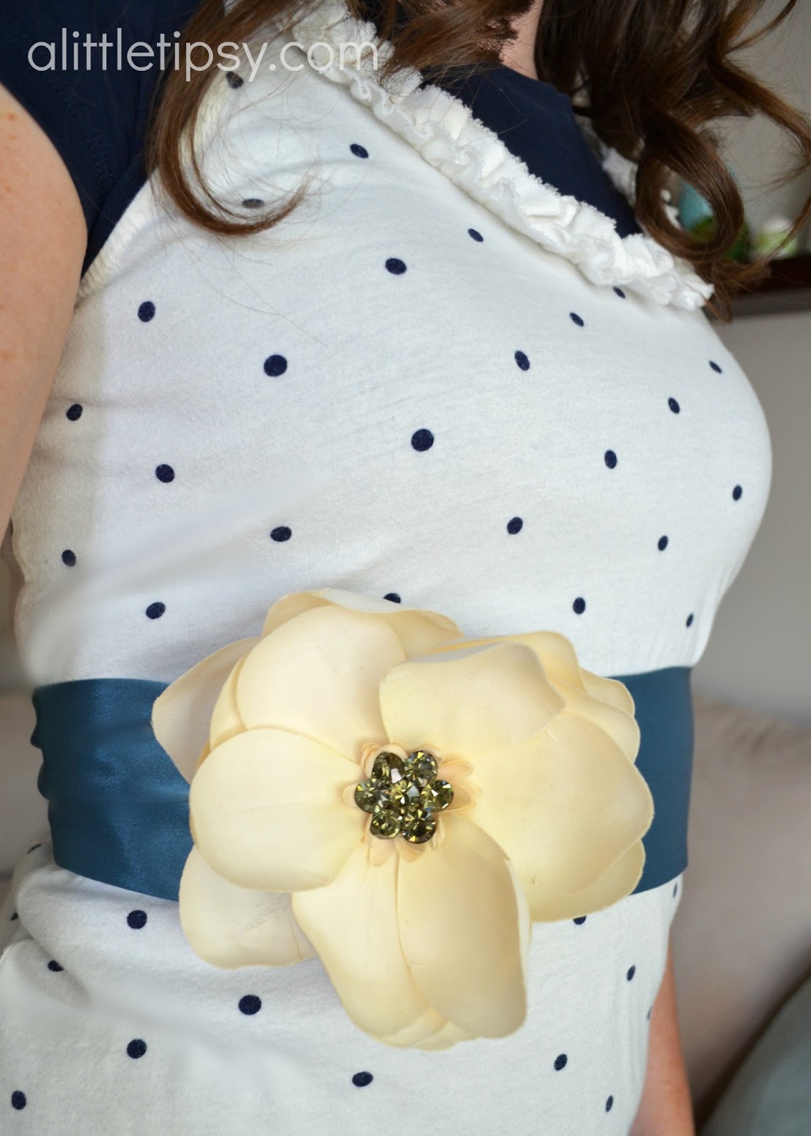 3. I wanted my flower to be removable so I could make more and swap them out so I attached the flower to the sash with two hair clips.