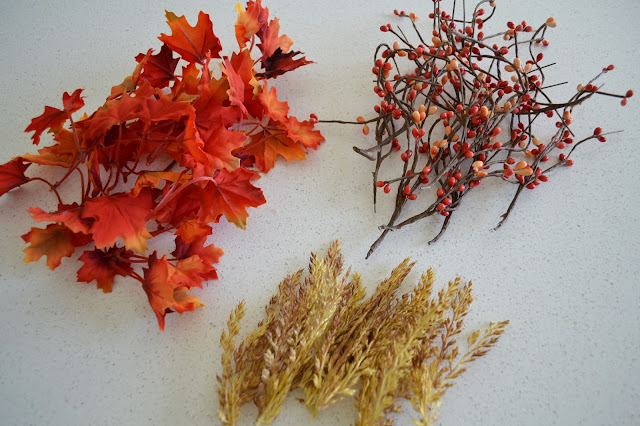 1. Separate the small branches off the stems. I chose the ones in the picture, but you can choose something completely different and create your own look. Right now, fall stems are on sale for 40% off at most of the craft stores.