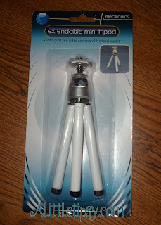 - Look for helpful items in unexpected places. I found this mini tripod on the right at Dollar Tree. It is small enough to fit in a purse as it only extends to about 6 or 7 inches tall, but works wonders for keeping pictures still so they aren’t blurry.