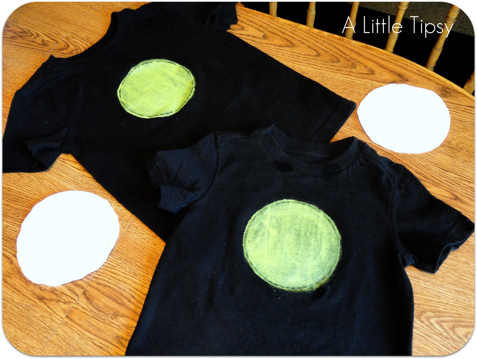 1. Wash t-shirts to remove any shrinkage issues. Find a bowl the size you want the mummy head to be and press on to shirt leaving a ring.