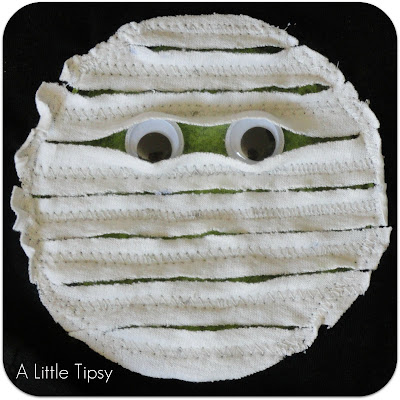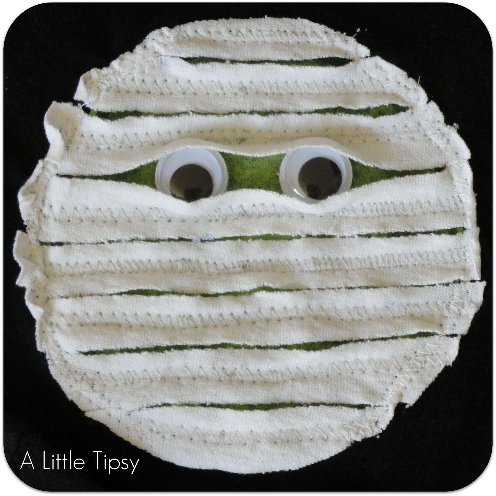 7. Secure googly eyes to your mummy shirt with adhesive velcro dots (if your child is over 3 and you want to take them off to wash) or glue (if your child is under three or you want them affixed permanently).
