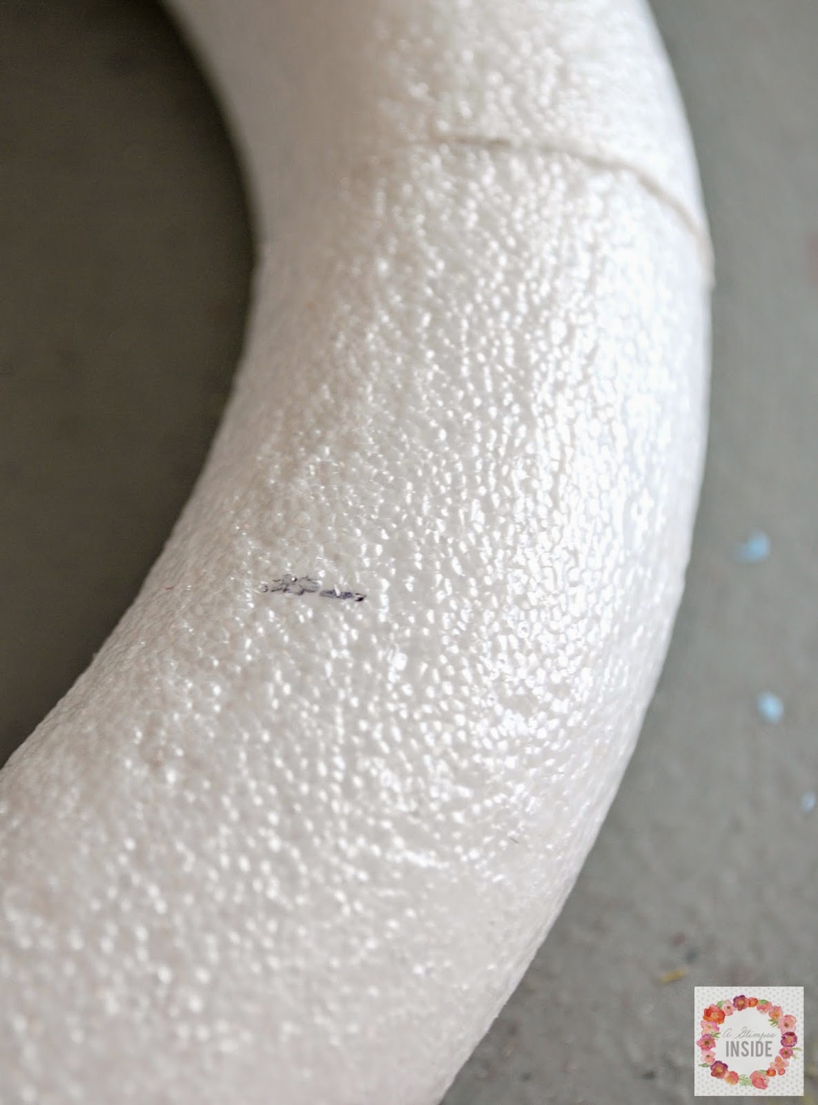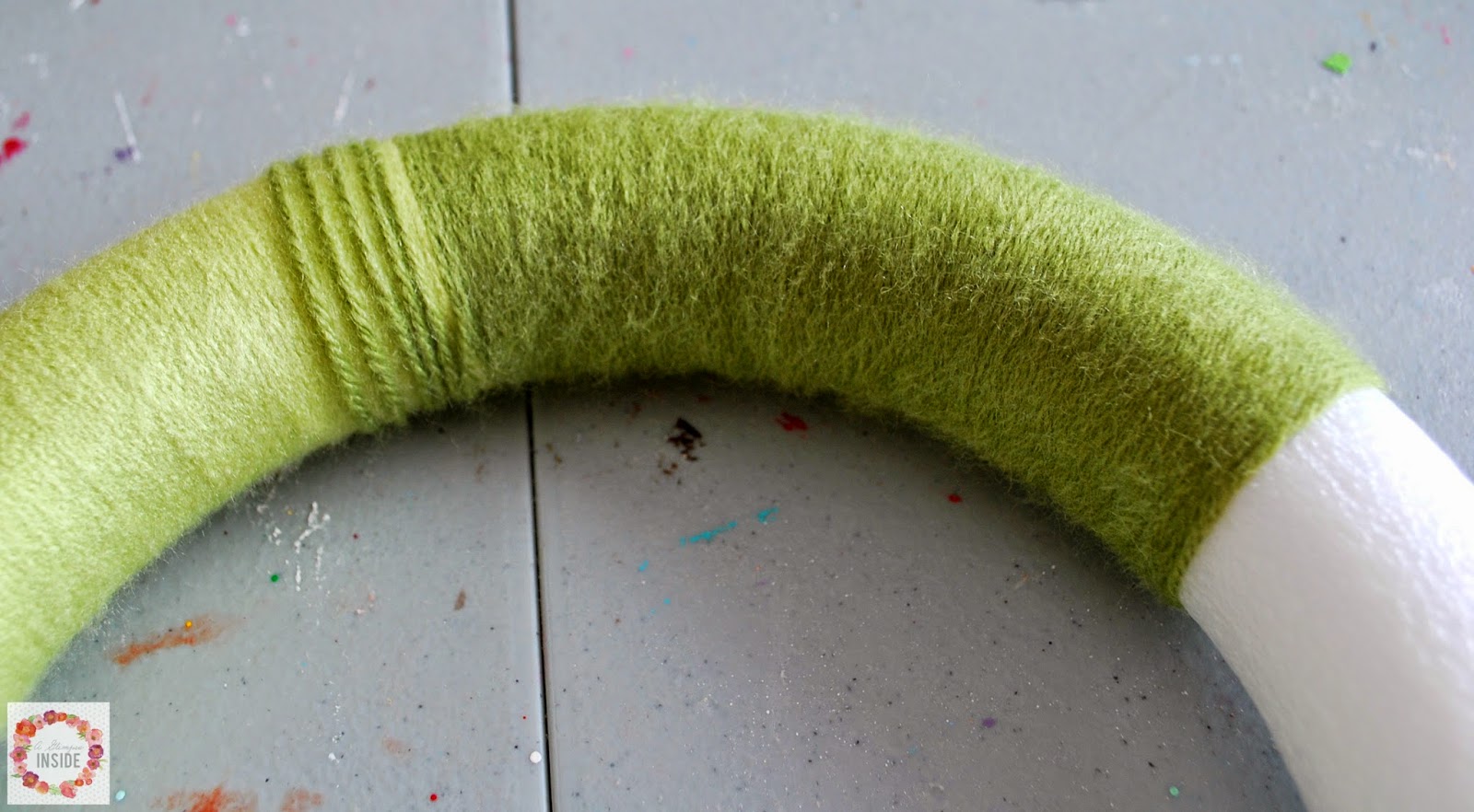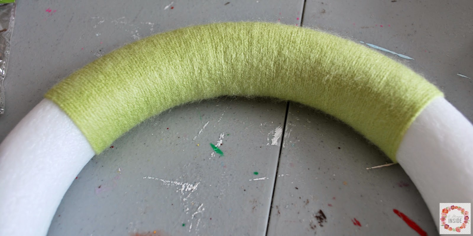 Continue until the entire wreath is wrapped. Pin the ends in place on the back, or you can hot glue it.